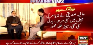 On December 4, Senator Talha Mahmood was also in the meeting between Aafia Siddiqui and Fowzia Siddiqui which continued for 44 minutes. Aafia Siddiqui complained